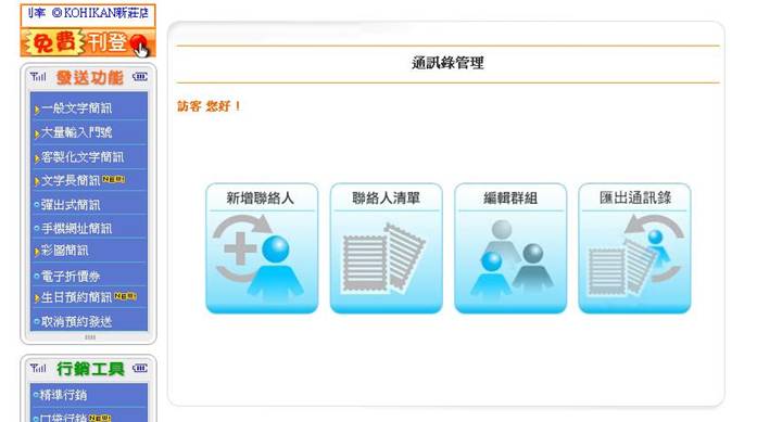 四、資料管理: 4.通訊錄管理(提供檔案滙入),提供帳戶/個人連絡人資料與群組管理。 |