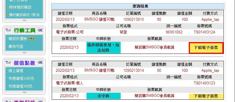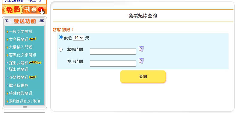 --發票記錄查詢(選擇欲查詢的時間範圍) | ||||||