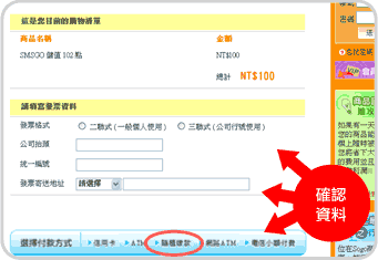 確認你的購物清單並請填寫發票資料後選擇付款方式。