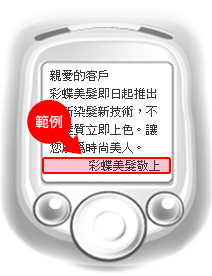 請在以下輸入您每封簡訊的制式祝詞或文字(少於40字), 輸入名稱過長將會減少您在簡訊內容的數字。