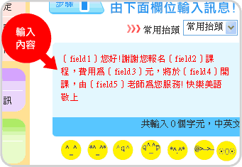 系統會自動將這些欄位代號代入 csv 檔中的參數內容 。